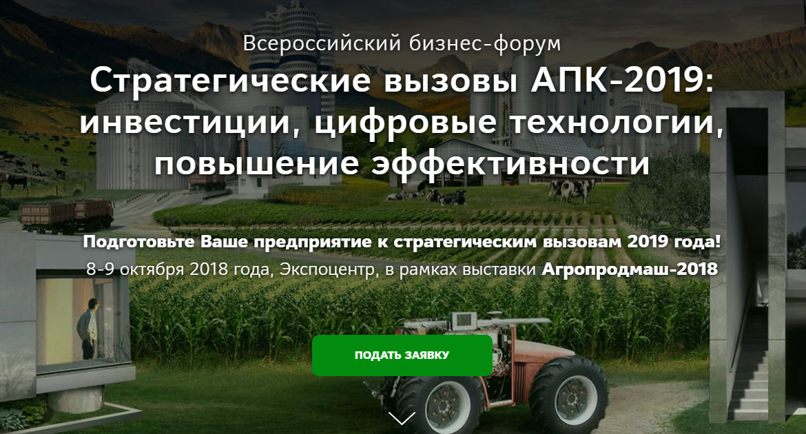 Павел Грудинин (Директор ЗАО «Совхоз имени Ленина») и Дмитрий Потапенко (Омбудсмен по защите прав предпринимателей) в рамках Всероссийского Бизнес-Форума «Стратегические вызовы АПК: инвестиции, цифровые технологии, повышение эффективности» (8-9 октября, 2018) примут участие в VIP-сессии.