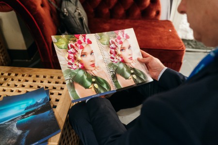 В течение всей встречи гости могли сфотографироваться и получить готовый портрет, напечатанный на бумагах бренда E-PHOTO производства Felix Sсhoeller. На первый взгляд может показаться, что это обычная фотобумага, однако ее поверхность с обеих сторон покрыта полиэтиленовым слоем, что защищает и саму бумагу, и нанесенное на нее изображение от воды. В зависимости от того, каких эффектов при выпуске фотопродукции хочется добиться, используются разные виды: Lustre, Metallic, Matt.