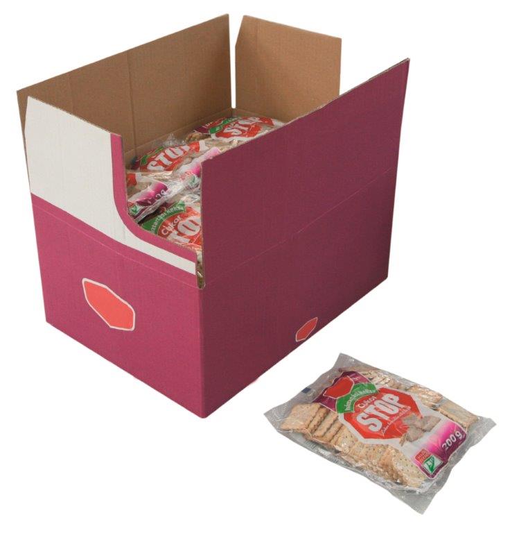 This particularly compact system has been specifically designed for a private label manufacturer to pack pillow bags of biscuits into an RSC case in a laying configuration.