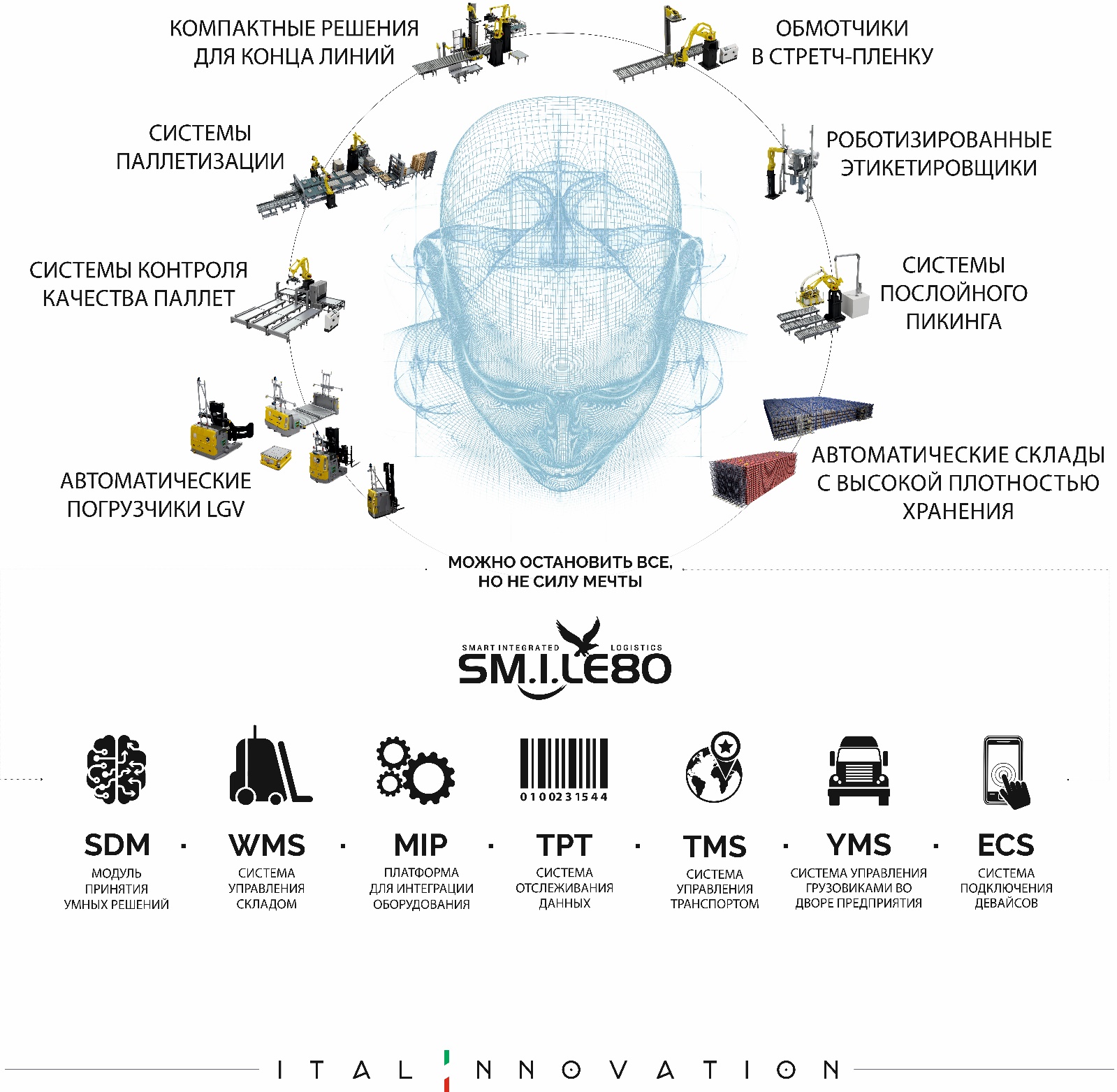 Elettric80 была основана в Италии в 1980 году. Уже в 1992 году мы разработали и реализовали первую систему на базе автоматических погрузчиков LGV с лазерной навигацией, отвечающей принципам Индустрии 4.0. И вот уже более 30 лет мы развиваемся в данном направлении. Сегодня мы говорим об «умном» предприятии 4.0, полностью автоматизированном и роботизированном, процессы которого интегрированы уникальным программным обеспечением SM.I.LE80 нашей собственной разработки. Это автоматические склады, автоматические погрузчики, роботы-паллетизаторы и многое другое. Что важно, данные решения являются модульными и гибкими, их можно внедрять поэтапно как на существующих предприятиях, так и на строящихся «с нуля».