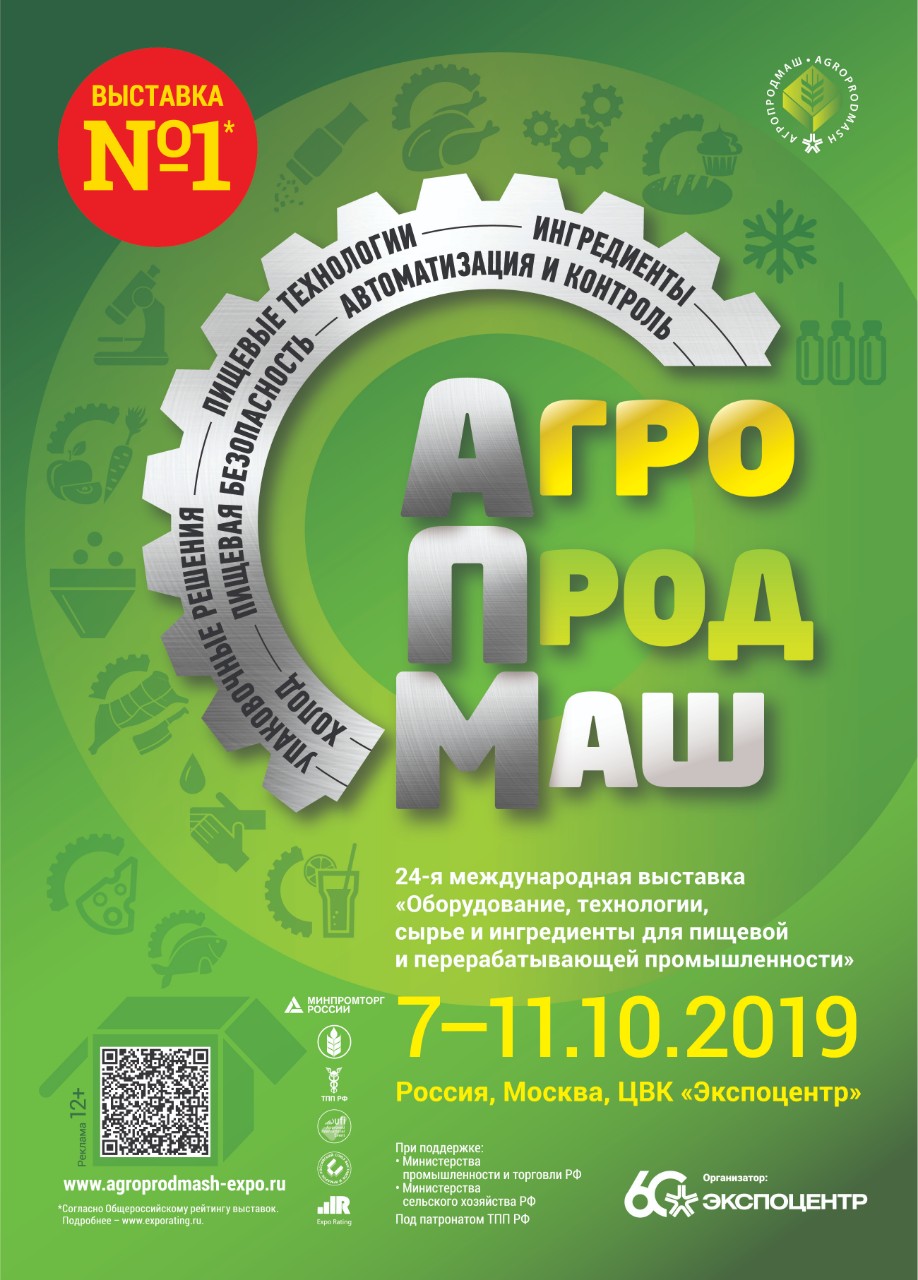 С 7 по 11 октября пройдет 24-я международная выставка оборудования, технологий, сырья и ингредиентов для пищевой и перерабатывающей промышленности - «Агропродмаш-2019».
