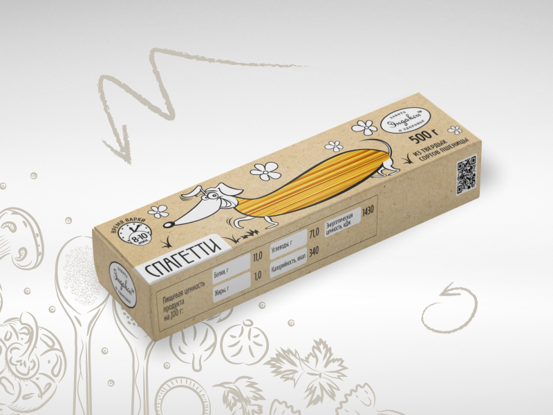 В дизайн-концепции упаковки никаких стандартных картинок. Здесь основной герой – забавная такса с прозрачным окошком-туловищем, через которое видно содержимое коробки. Образ таксы позволит покупателю с легкостью узнавать упаковку полюбившегося продукта.