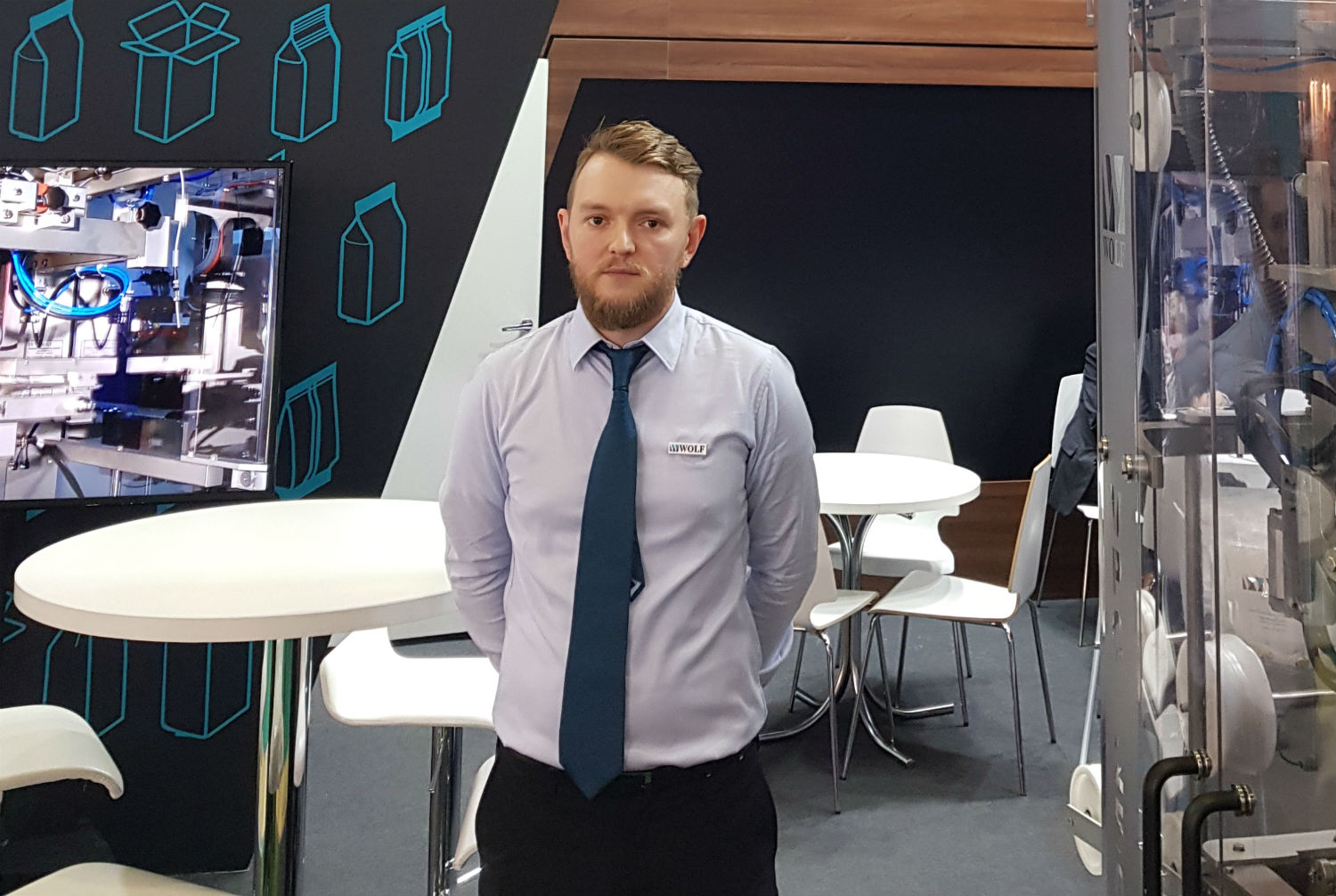 Мы второй раз участвуем в «Агропродмаше», первый был в прошлом году. Сейчас мы привезли вертикальную упаковочную машину VPC в специсполнении для упаковки пакетов «дойпак» с застежкой типа easylock («легкая застежка»). Это новый тип застежки, она становится популярной в России. Особенность нашей техники именно в ее вертикальном исполнении – обычно для пакетов «дойпак» используются горизонтальные машины, но многие производители, и мы не исключение, уже выпускают вертикальные варианты такого оборудования. Наша машина произведена в Германии, работает со скоростью 100-110 пакетов/мин., что является очень хорошим показателем. Из опций – упаковка в среде ГМС, еще можно установить этикетировщик, поставить дегазационный клапан, например, для кофе и чая, предусмотрены другие возможности модернизации. Кроме того, у компании большой опыт в производстве оборудования для детского питания: мы сотрудничаем с Nestle и другими международными компаниями.