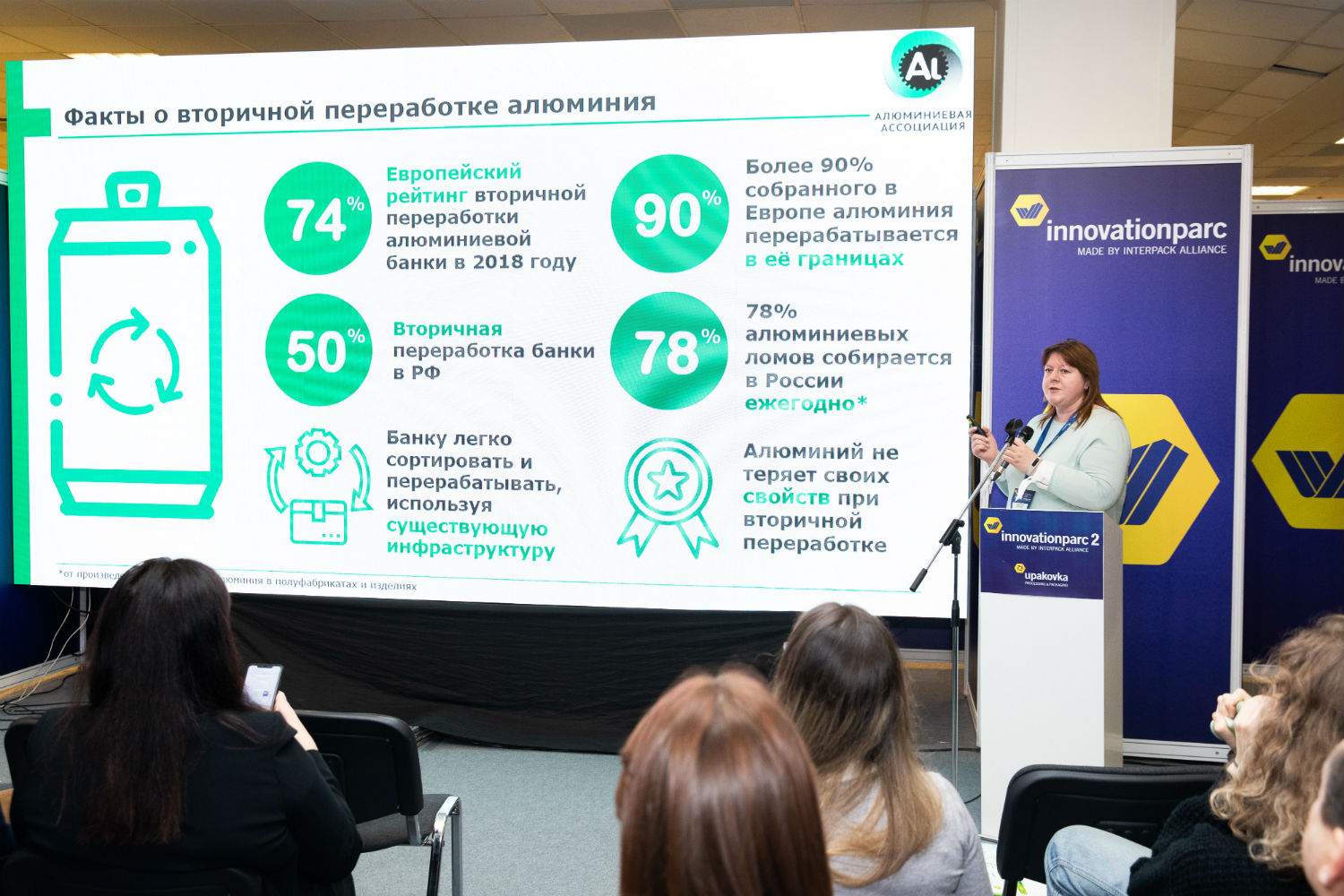 «Изменение расширенной ответственности производителей (РОП) и нормативов утилизации применительно к алюминиевой упаковке» – такое название имело выступление руководителя сектора ТНП Алюминиевой ассоциации Натальи Кузенковой. Начав с заявления, что алюминиевая банка – самая перерабатываемая упаковка, в чём никто из присутствовавших не сомневался, она привела цифры, что в Европе 78% собранной тары вновь становится банкой, а в России только 50%. Стремление к переработке ста процентов использованных банок – это идеал, которого никогда не достичь, хотя бы потому, что часть массы банки составляют лак и краска. Далее выступавшая коснулась политики ЕС в сфере упаковки, и редкий случай, подвергла её критике, на взгляд автора заметок, критике «по делу». Подвергся критике и законопроект № 869136-7. Перенос РОП на производителя упаковки приведёт к тому, что упаковывающие продукцию предприятия не будут заинтересованы в её сборе. Производителям же придется платить за всю выпущенную ими продукцию, включая и ту, что по разным причинам не стала упаковкой. А, по сути, этот законопроект, теоретически меняя один пункт экологического законодательства, может разрушить всю сложившуюся систему сбора и переработки упаковочных отходов, как бы ни была она плоха или хороша.