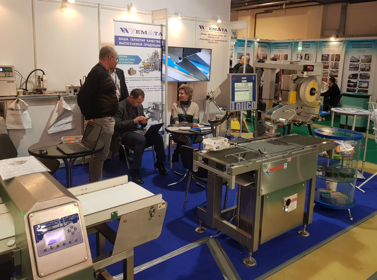 Татьяна Апухтина, генеральный директор компании «Вемата», рассказала: «Компания «Вемата» постоянный участник этой выставки. На своем стенде мы стараемся показать самые востребованные решения для маркировки, этикетировки и инспекционные системы. Вот и на этот раз мы привезли много техники: автоматическую этикетировочную машину с функцией проверки веса VENUS PE130, детектор металла VEMATA MD-4012, рентген-систему VEMATA-XR, различные принтеры-маркираторы и аппликаторы, вакуумные упаковочные машины, а также несколько единиц оборудования ещё одного нашего поставщика – голландской компании Audion. Это известный производитель популярных в России моделей запайщиков для пакетов. Кстати, с этого года мы стали эксклюзивным представителем Audion в России.
