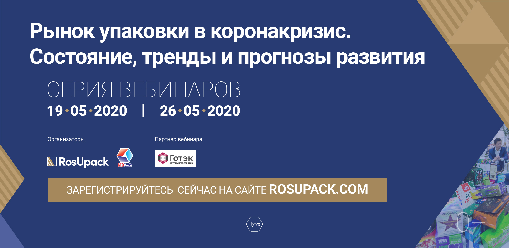 26 мая 2020, 15:00 (МСК) состоится вебинар «Рынок полимерной упаковки в коронакризис. Состояние, тренды и прогнозы развития»